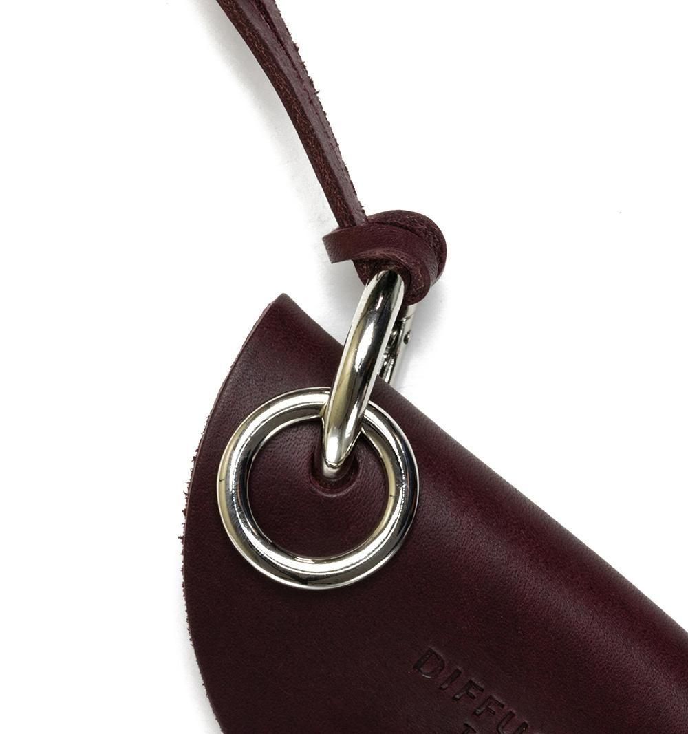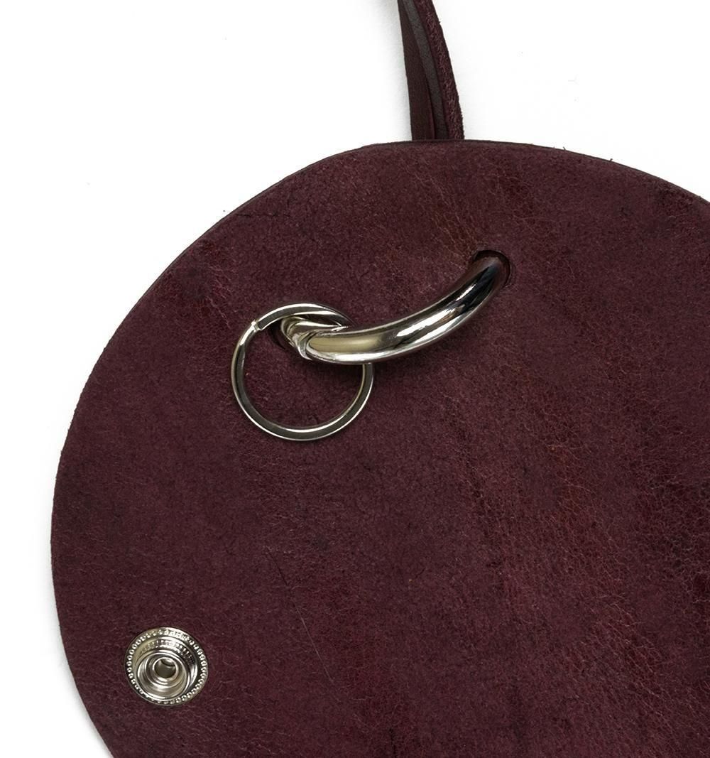 カラビナ付きでバッグのハンドルやベルトループにも取り付け可能。円形のキーケース部分の内側には二重リングが付いており、複数の鍵をしっかり収納できます。