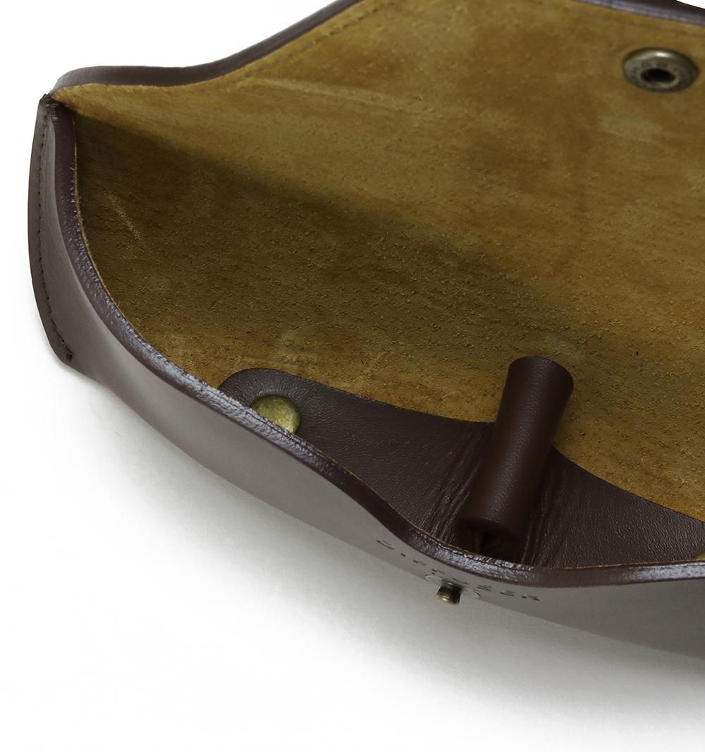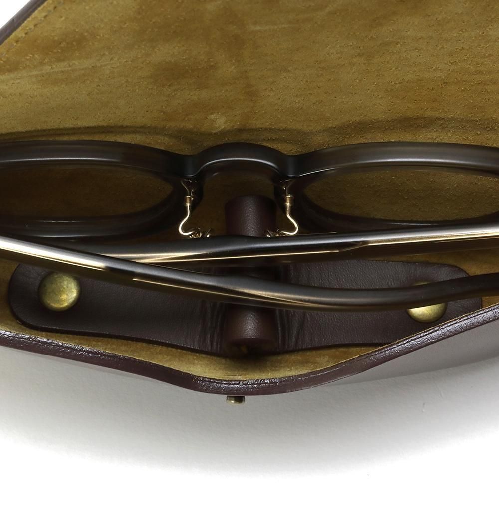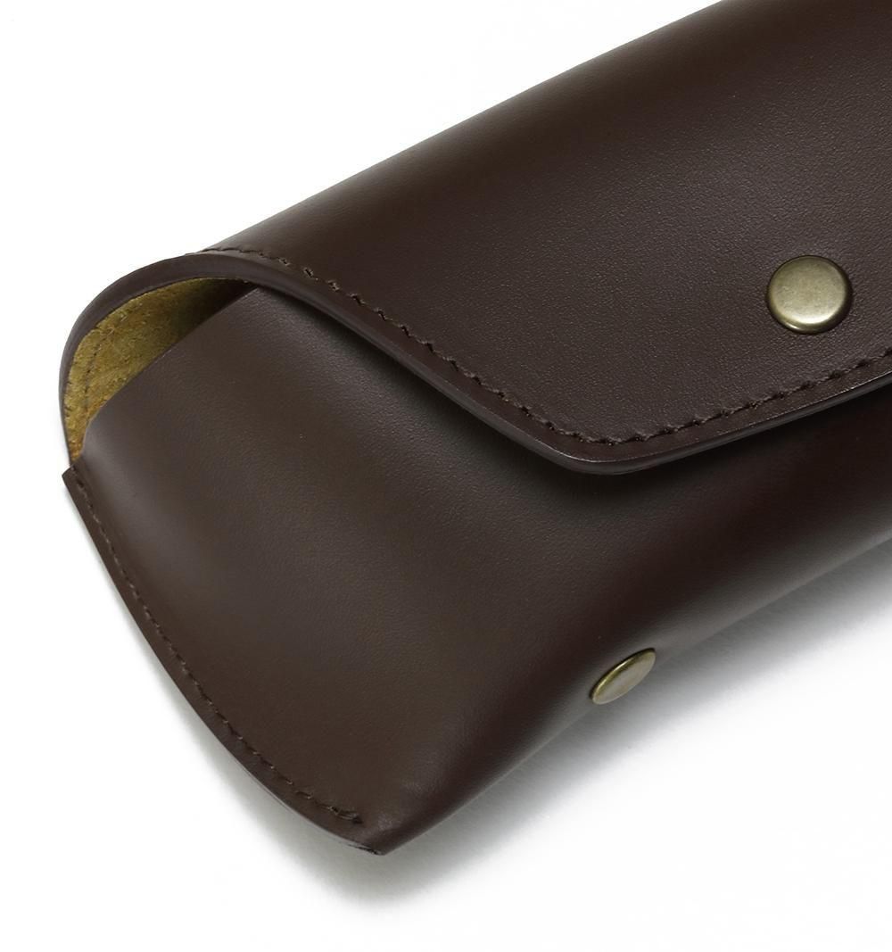 上質な日本の革で作られた、使いやすいサイズのケース日本製の上質なヌメ革を使用しています。ただ このヌメ革はタンニンの量を通常より少なくし、その分クロームを含ませていますので、ヌメ革とは思えないしなやかさを持っています。経年変化をしない革タンニンの強いヌメ革は経年変化が魅力ですが、この革はクロームが含まれていますため、経年変化はおこりません。ですが革自体に高級感ある弾力性があり、使う度に喜びを感じていただけます。眼鏡フレームに適したサイズ設計このケースは一般的なメガネフレームがジャストではいるようなサイズになっています。大きめのサングラスは格納しづらいですので、購入をされる前に格納予定のフレームの大きさをご確認ください。内側は木目の細かい国産のピッグスエードを使用し、アイウエアにとって心地よい空間が広がっています。大きすぎない分すっきりとしており、使いやすいサイズになっています。ギフトとしてお選びいただくこともおすすめです。以下は商品の詳細になります。