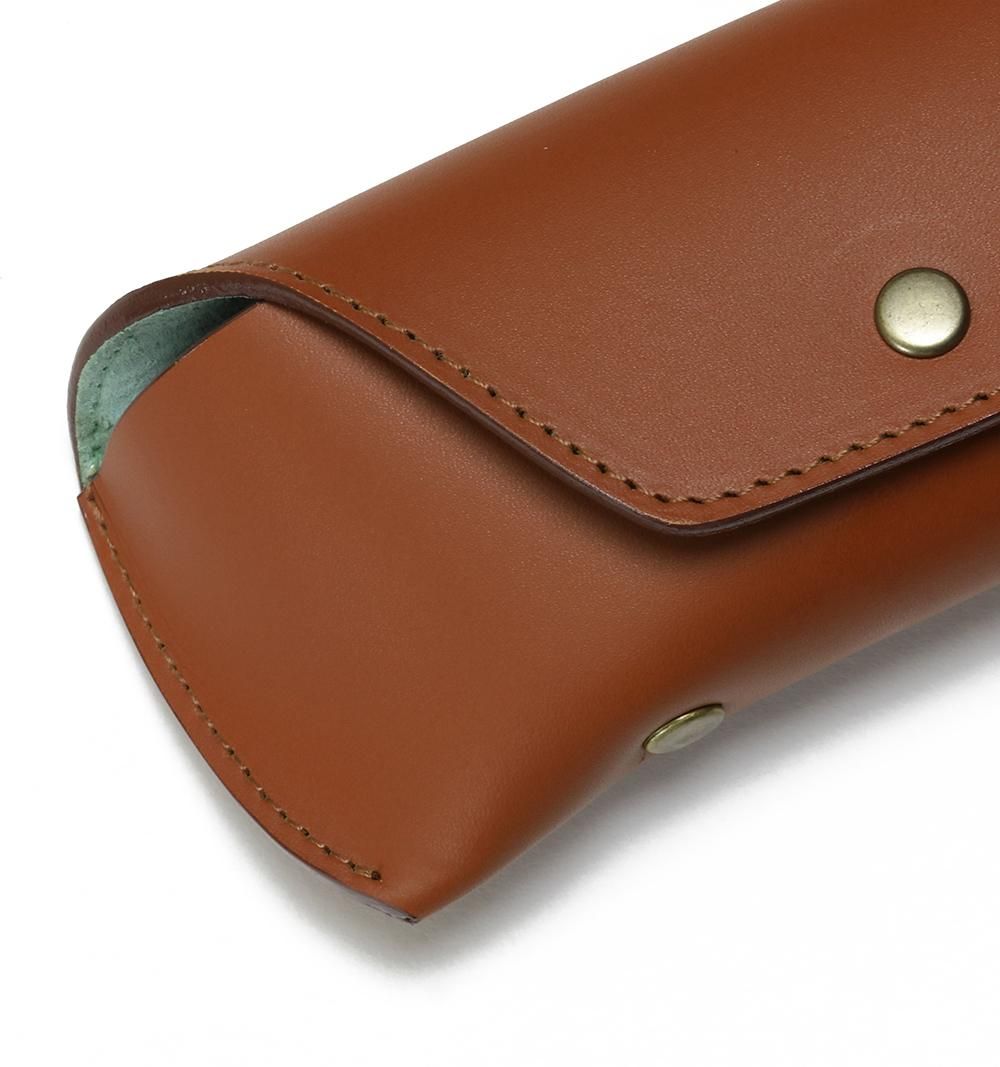 上質な日本の革で作られた、使いやすいサイズのケース日本製の上質なヌメ革を使用しています。ただ このヌメ革はタンニンの量を通常より少なくし、その分クロームを含ませていますので、ヌメ革とは思えないしなやかさを持っています。経年変化をしない革タンニンの強いヌメ革は経年変化が魅力ですが、この革はクロームが含まれていますため、経年変化はおこりません。ですが革自体に高級感ある弾力性があり、使う度に喜びを感じていただけます。眼鏡フレームに適したサイズ設計このケースは一般的なメガネフレームがジャストではいるようなサイズになっています。大きめのサングラスは格納しづらいですので、購入をされる前に格納予定のフレームの大きさをご確認ください。内側は木目の細かい国産のピッグスエードを使用し、アイウエアにとって心地よい空間が広がっています。大きすぎない分すっきりとしており、使いやすいサイズになっています。ギフトとしてお選びいただくこともおすすめです。以下は商品の詳細になります。