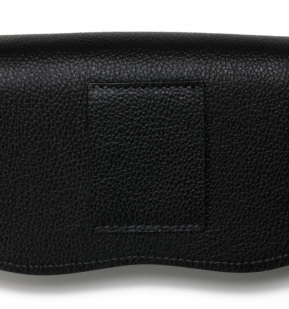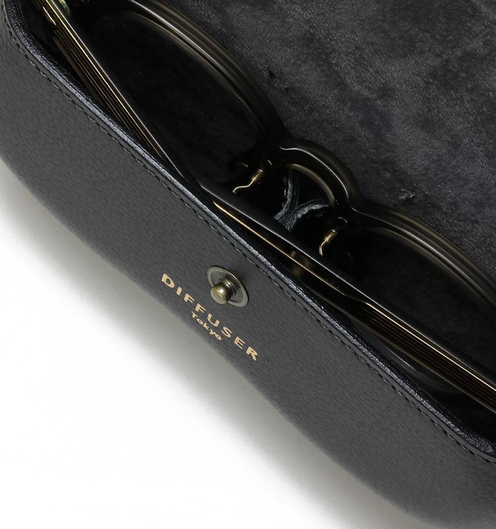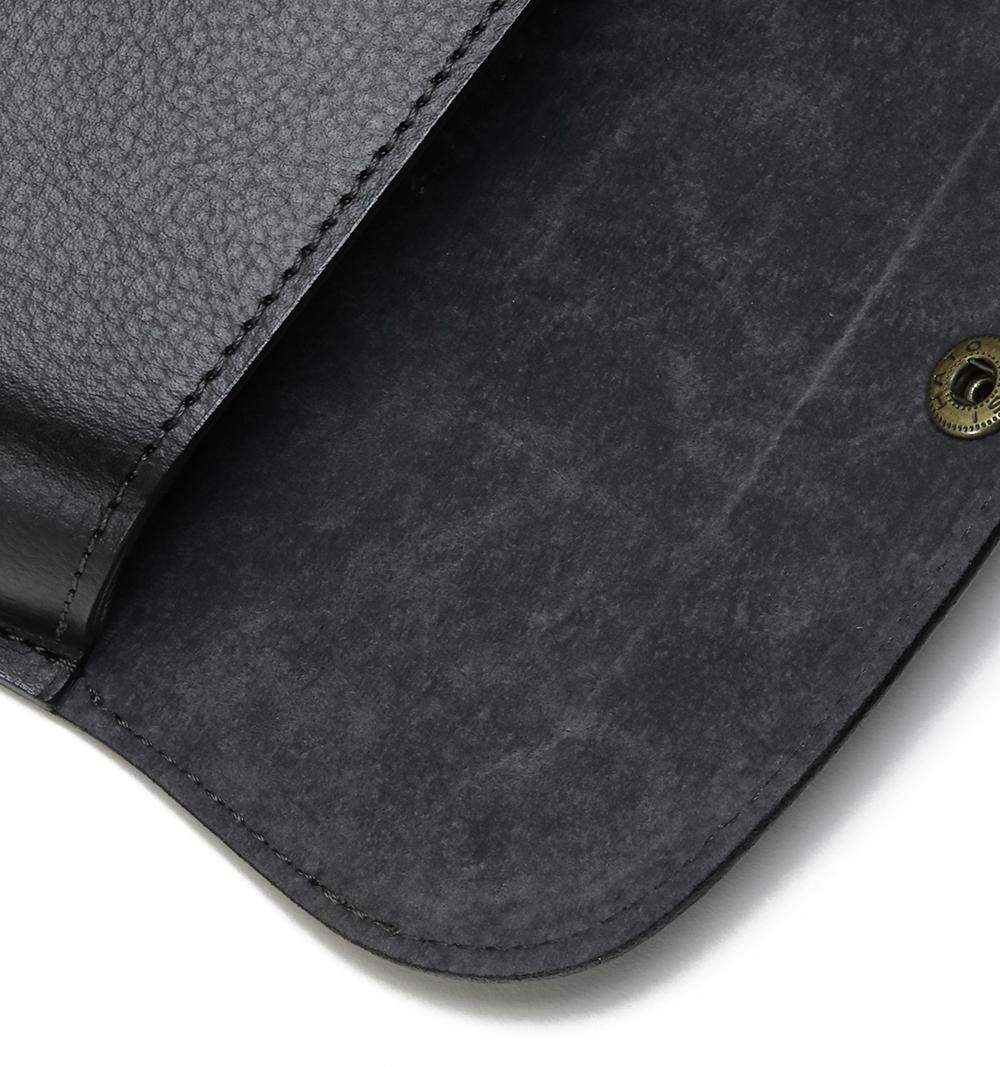 ベルトやストラップを通せる水絞り眼鏡ケース眼鏡ケースのデザインに対して一定の需要があるのがベルトに通せる機能です。普段カバンなどをあまり持たない人にとって、これほど便利な眼鏡ケースはないと思いますが、さらに機能性をアップデートしたデザインにしました。魅せるケースとしておしゃれに、ファッションのポイントとなるように形状にこだわりました。この独特のシルエットを実現するために水絞り製法によって製作をしました。大きめのサングラスも格納できるように、ケースの入り口から底までマチ幅が変わらない構造に設計しています。3日かかる立体成型水絞り革成型とは、タンニン革の特性でもある可塑性(力を加えて変形させると、元に戻らないという性質)を利用した成型技法で、水分を含ませた革を木製の成型枠に挟みこんで、立体的な革を成形する製法です。この成型には3日ほど時間がかかり、とても手間がかかるのと、さまざまな条件によって革の変化も異なりますので、長年の経験と高い技術力が必要になります。このケースでは芯材にタンニン革を使用してまして、水絞りによって強度がましてますのでセミハードケースとしてお使いいただけます。表面の革はクロムなめしの革になりますので経年変化は起こりません。コーディネートのアクセントしての使い方ベルトに通して腰から下げたり、ショルダーバッグのストラップに通し2連のカバンのようにすることもできます。ぜひ、そのコーディネートをお楽しみください。□サイズ   外寸:幅18cm 高さ9.5cmマチ4.5cm 内寸:幅15.5cm 高さ7cmマチ3cm