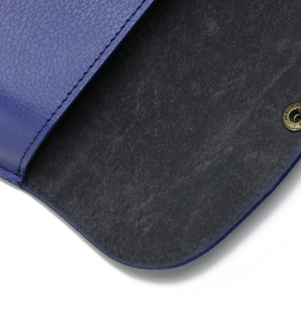 ベルトやストラップを通せる水絞り眼鏡ケース眼鏡ケースのデザインに対して一定の需要があるのがベルトに通せる機能です。普段カバンなどをあまり持たない人にとって、これほど便利な眼鏡ケースはないと思いますが、さらに機能性をアップデートしたデザインにしました。魅せるケースとしておしゃれに、ファッションのポイントとなるように形状にこだわりました。この独特のシルエットを実現するために水絞り製法によって製作をしました。大きめのサングラスも格納できるように、ケースの入り口から底までマチ幅が変わらない構造に設計しています。3日かかる立体成型水絞り革成型とは、タンニン革の特性でもある可塑性(力を加えて変形させると、元に戻らないという性質)を利用した成型技法で、水分を含ませた革を木製の成型枠に挟みこんで、立体的な革を成形する製法です。この成型には3日ほど時間がかかり、とても手間がかかるのと、さまざまな条件によって革の変化も異なりますので、長年の経験と高い技術力が必要になります。このケースでは芯材にタンニン革を使用してまして、水絞りによって強度がましてますのでセミハードケースとしてお使いいただけます。表面の革はクロムなめしの革になりますので経年変化は起こりません。コーディネートのアクセントしての使い方ベルトに通して腰から下げたり、ショルダーバッグのストラップに通し2連のカバンのようにすることもできます。ぜひ、そのコーディネートをお楽しみください。□サイズ 外寸:幅18cm 高さ9.5cmマチ4.5cm 内寸:幅15.5cm 高さ7cmマチ3cm