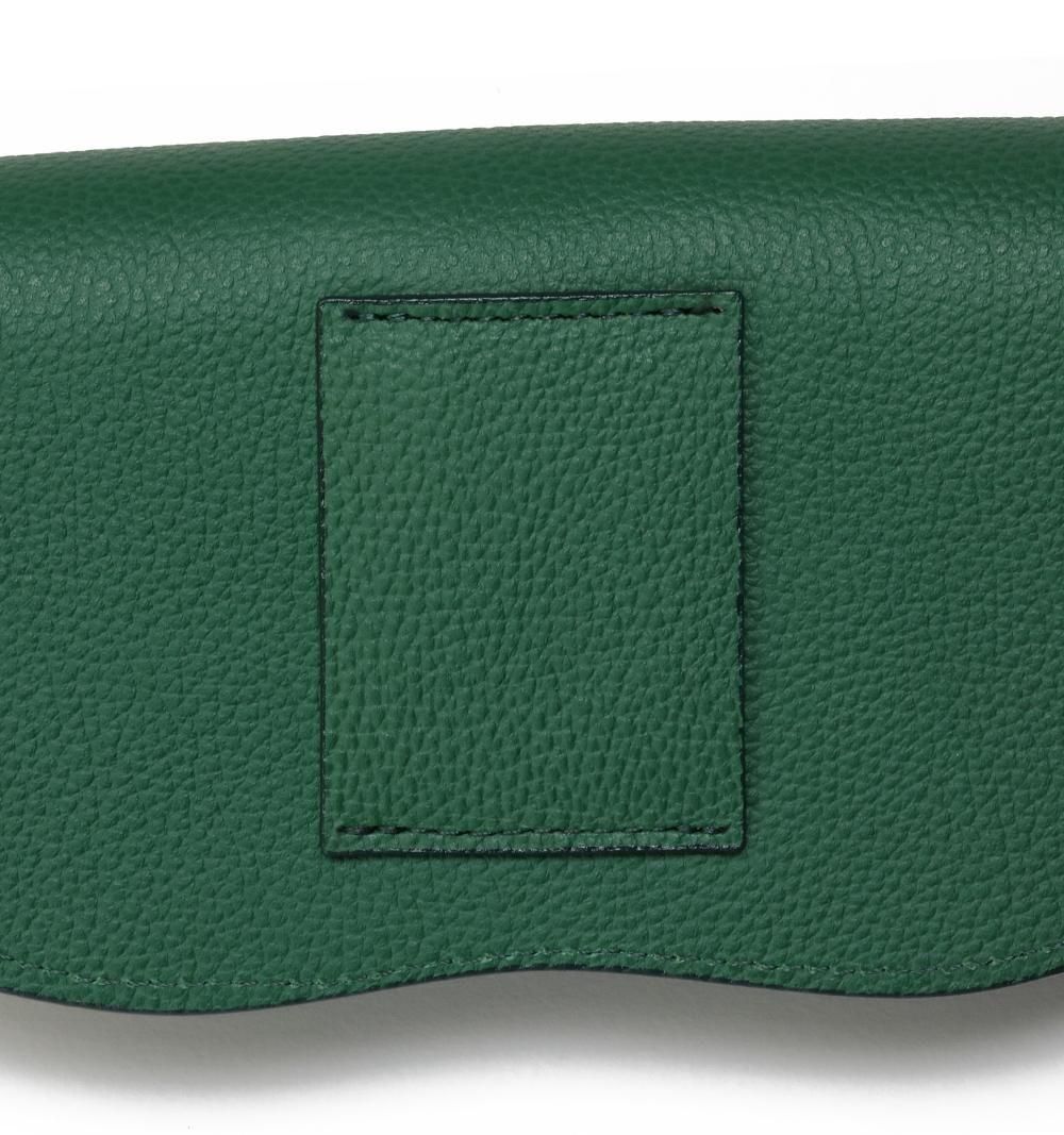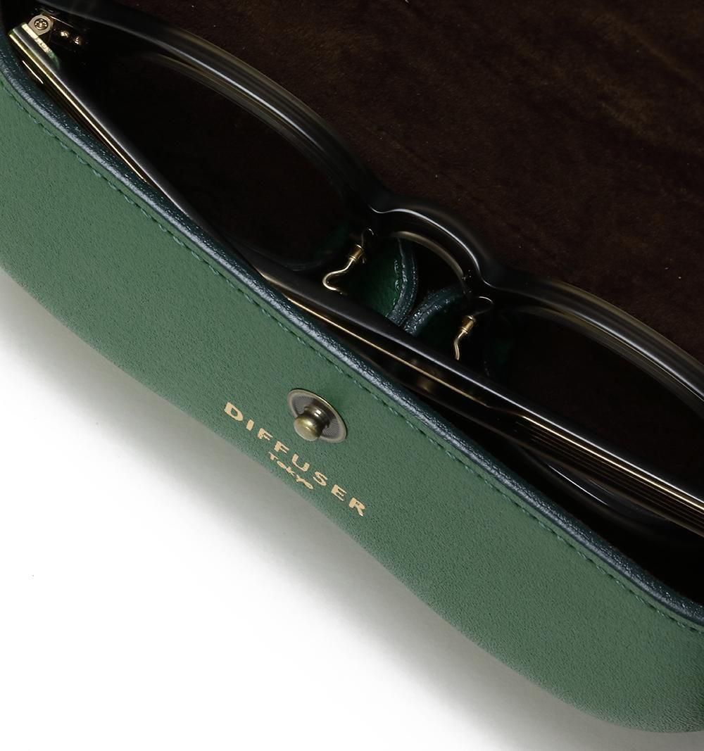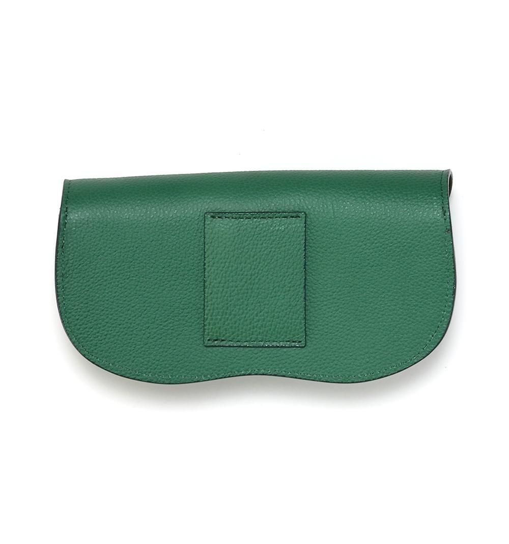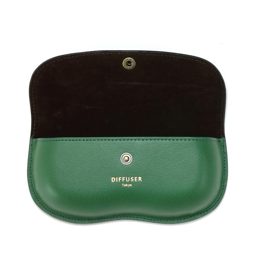 ベルトやストラップを通せる水絞り眼鏡ケース眼鏡ケースのデザインに対して一定の需要があるのがベルトに通せる機能です。普段カバンなどをあまり持たない人にとって、これほど便利な眼鏡ケースはないと思いますが、さらに機能性をアップデートしたデザインにしました。魅せるケースとしておしゃれに、ファッションのポイントとなるように形状にこだわりました。この独特のシルエットを実現するために水絞り製法によって製作をしました。大きめのサングラスも格納できるように、ケースの入り口から底までマチ幅が変わらない構造に設計しています。3日かかる立体成型水絞り革成型とは、タンニン革の特性でもある可塑性(力を加えて変形させると、元に戻らないという性質)を利用した成型技法で、水分を含ませた革を木製の成型枠に挟みこんで、立体的な革を成形する製法です。この成型には3日ほど時間がかかり、とても手間がかかるのと、さまざまな条件によって革の変化も異なりますので、長年の経験と高い技術力が必要になります。このケースでは芯材にタンニン革を使用してまして、水絞りによって強度がましてますのでセミハードケースとしてお使いいただけます。表面の革はクロムなめしの革になりますので経年変化は起こりません。コーディネートのアクセントしての使い方ベルトに通して腰から下げたり、ショルダーバッグのストラップに通し2連のカバンのようにすることもできます。ぜひ、そのコーディネートをお楽しみください。□サイズ 外寸:幅18cm 高さ9.5cmマチ4.5cm 内寸:幅15.5cm 高さ7cmマチ3cm