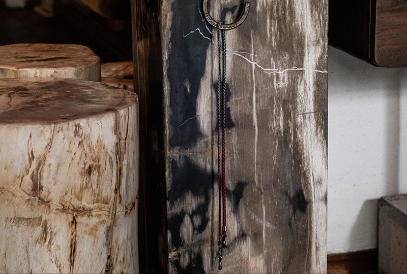首にかけた際の重量バランスも計算されており、長時間の着用でも疲れにくい。編み込まれた構造により、適度な弾力性と耐久性を両立。