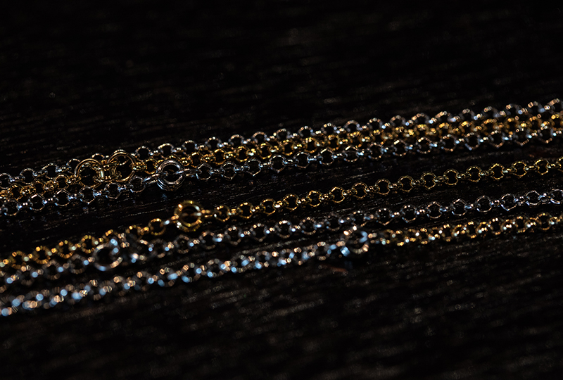 このアイテムの主役となるのは、ロロチェーンと呼ばれる形状のチェーンだ。丸い輪が連なる構造は、シンプルでありながら洗練された印象を与える。