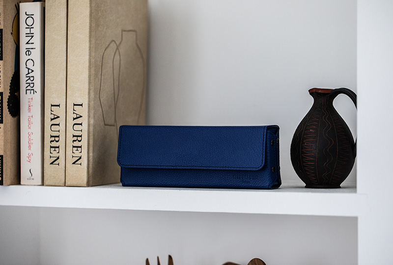 光の当たり方によって表情を変える革の質感が、シンプルな色味に深みをもたらす。6色それぞれが、使う人の日常に自然に溶け込んでいくだろう。