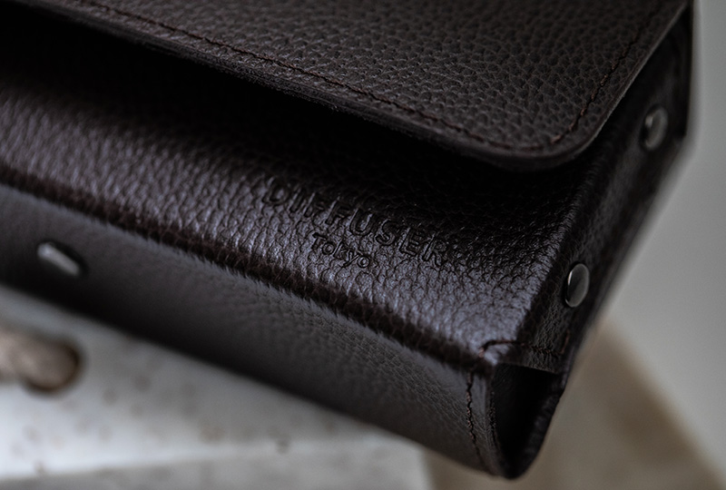 シュリンクレザーとは、特殊な薬品で革の銀面を収縮させ、独特のシボを出した革のこと。DIFFUSERが選んだこのレザーは、視覚的な美しさはもちろん、触覚に訴えかける「温もり」が特徴である。