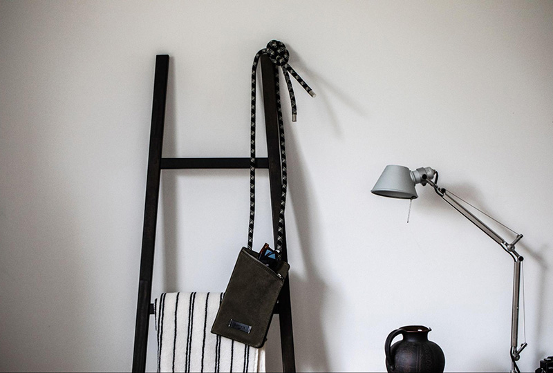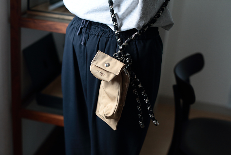 そして、コードに施されたコブ結びがこのアイテムに独特の表情を加える。立体的な結び目とスマートなケース部分のアンサンブルによって、程よい大人のカジュアルが完成されている。