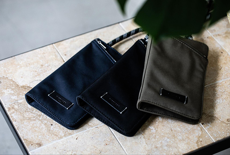 カラーはBlack & Beige cord、Navy & Green cord、Khaki & Beige cordの3展開。ケース本体とコードの配色が絶妙に調和し、ベーシックな3種類のカラーはあらゆるコーディネートに溶け込む。